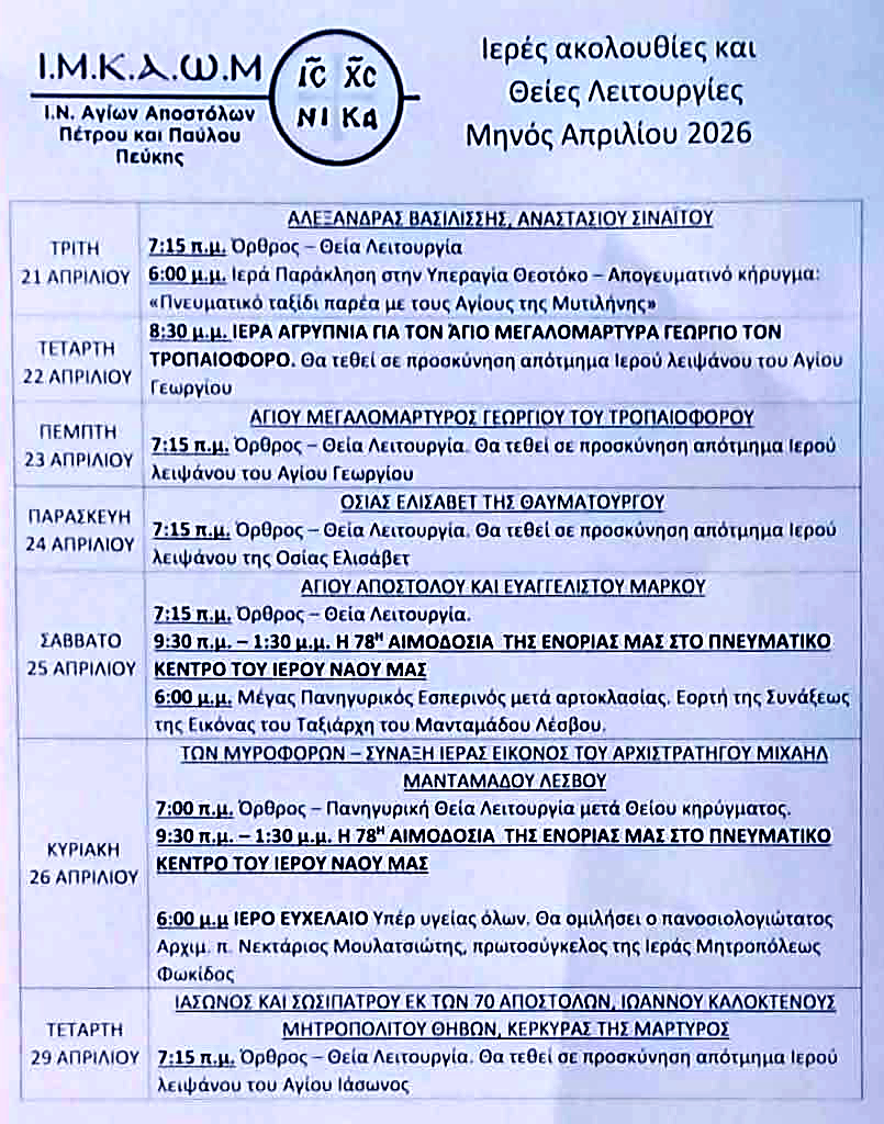 Με την πατρική ευχή και ευλογία του Σεβασμιωτάτου Ποιμενάρχου μας, Μητροπολίτου Κηφισίας Αμαρουσίου Ωρωπού και Μαραθώνος κ. Κυρίλλου, πραγματοποιήθηκε το διήμερο 15 και 16 Νοεμβρίου 2025, στο Πνευματικό Κέντρο του Ιερού Ναού Αγίων Αποστόλων Πέτρου και Παύλου Πεύκης, η 77η Εθελοντική Ενοριακή Αιμοδοσ...